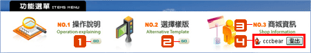 上方共有三大功能選單【NO.1 操作說明】【NO.2 選擇樣版】【NO.3 商城資訊】