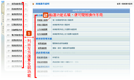 NO.1 操作說明:提供您後台管理系統的每項功能的操作說明。詳細介紹