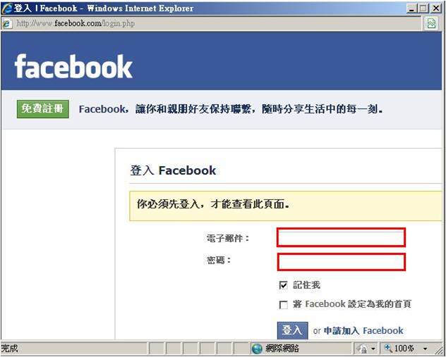 STEP2:如在尚未登入FB的狀態下,會請您先登入FB的畫面,如下圖
